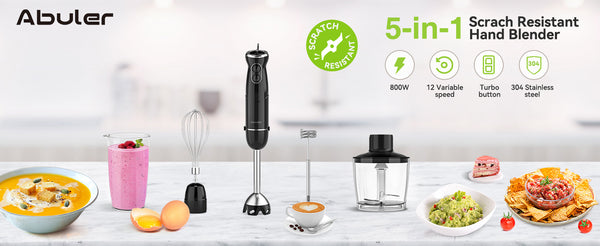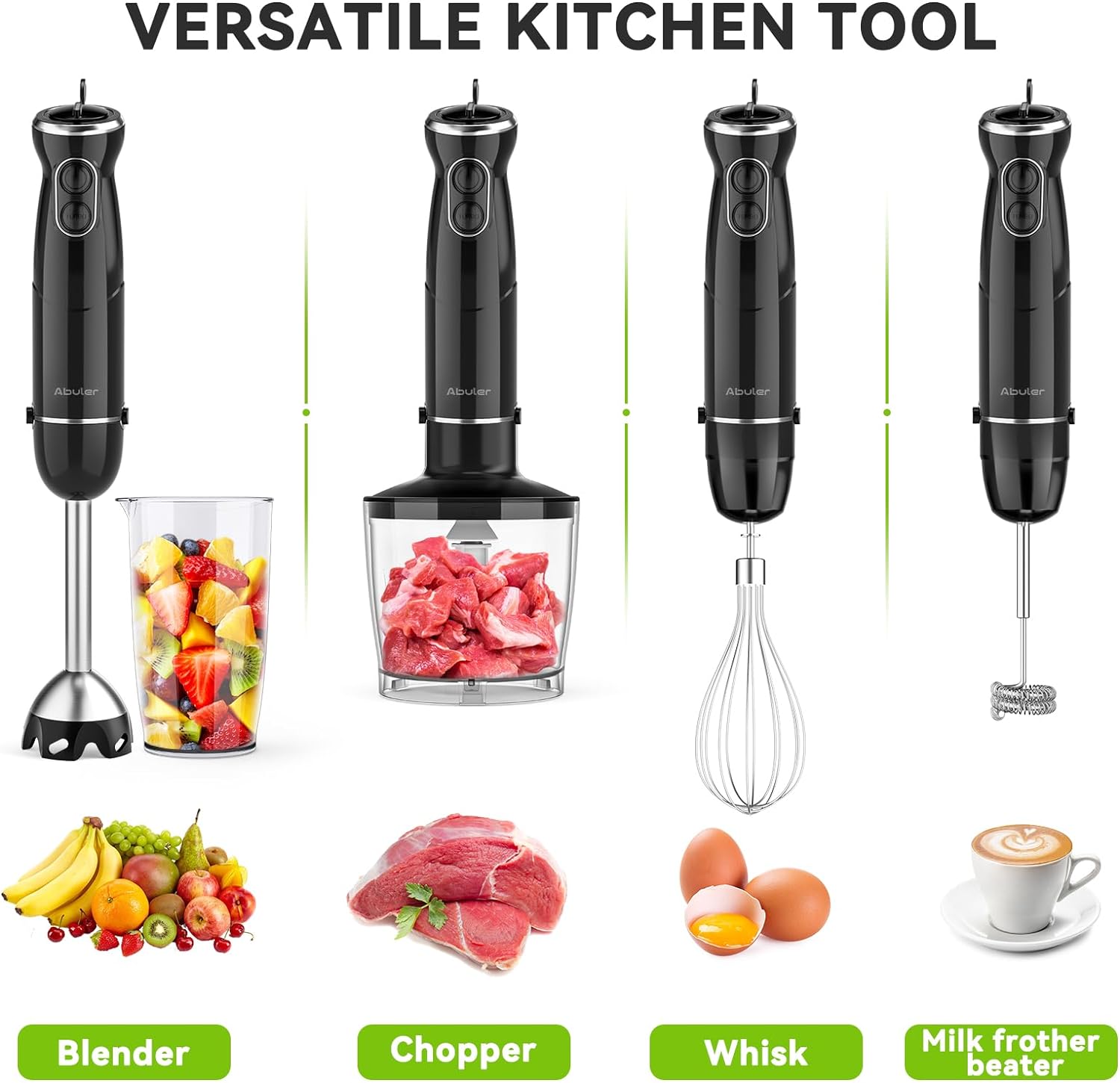 Immersion Blender Handheld, 1000W Scratch Resistant Hand Blender, Abuler 5 in 1 Emulsifier Blender Mixer, BPA-Free 12 Speed Stick Blender, Beaker, Chopper, Whisk, Frother, for Soup, Sauce (Black)
